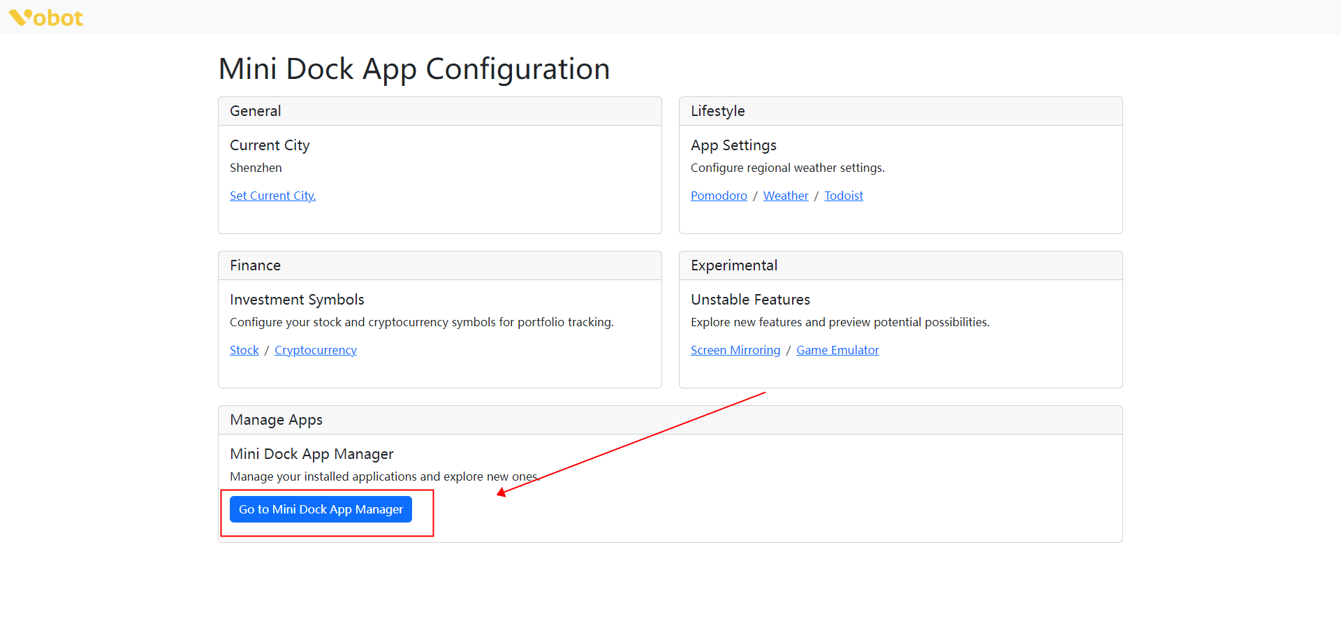 - In the Mini Dock App configuration, click "Go to Mini Dock App Manager".