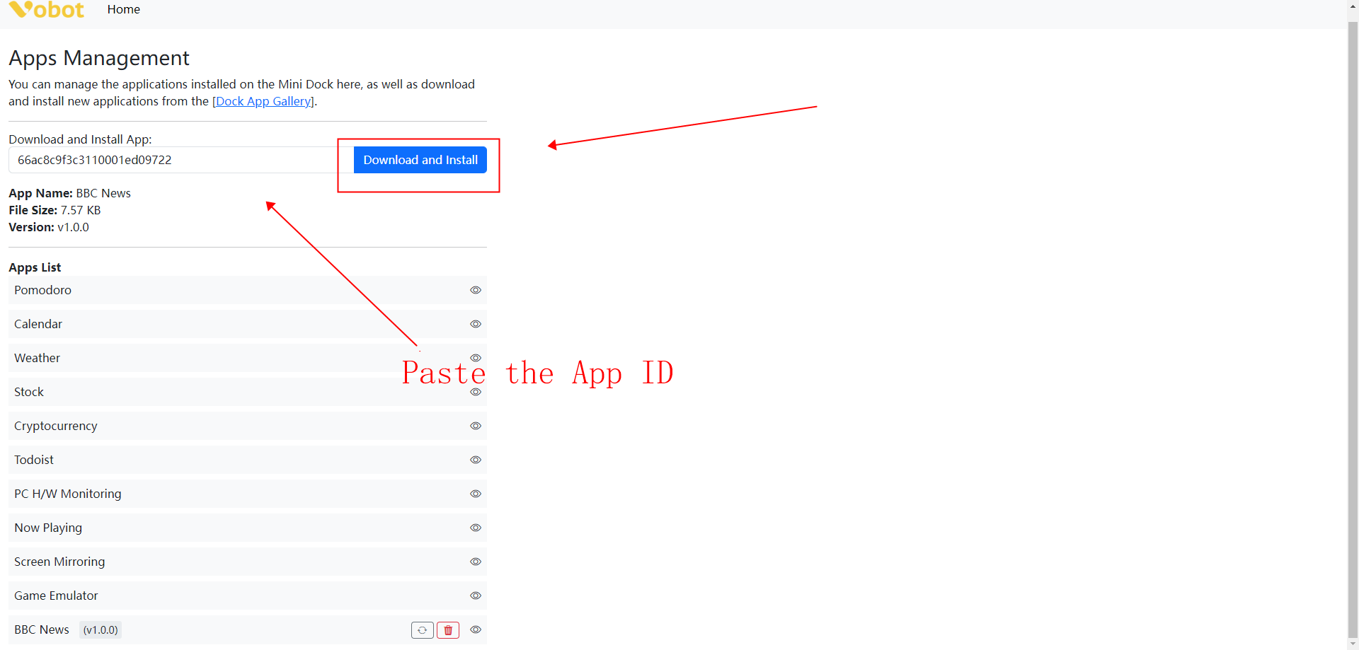 - Paste the App ID you want to download in the text box, and click "Download and Install".